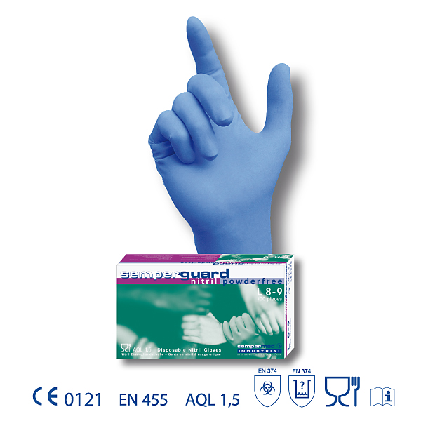 Ungepudert, sehr hautfreundlich, da frei von Latexproteinen, guter Schutz gegen Chemiekalien, sehr beständig gegen Öle und Fette, geringe Partikelablösung, griffsicher in feuchten Umgebungen, geprüft im Umgang mit Lebensmitteln,
